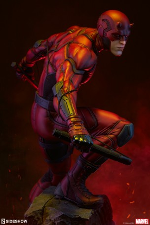 DESCRIPTIONDaredevil measures 21” tall above the rooftops of Hell’s Kitchen, lunging on top of a broken-window base inspired by the gothic architecture of the city he’s sworn to protect.