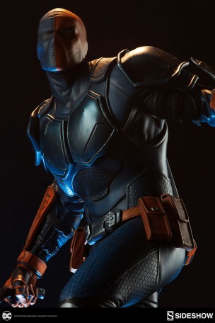 DESCRIPTIONSideshow’s proud to pay homage to the merciless man hunter Slade Wilson with this new museum quality Premium Format™ Figure, depicting this relentless assassin in his trademark orange and blue attire and one-eyed mask, but in our own signature hyper-real style.